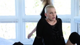 Emo lesbian Jynx Hollywood strapon banged in 3way bondage