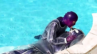 Cristal Kinky in latex catsuit – handjob and sex with bound sub in spandex vacbed Preview