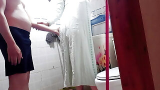 я смотрю на большую задницу моей мачехи, и я не могу вынести возбуждения, и в конце концов я трахаю ее задницу и оставляю ее полной молока