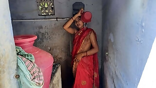жена из индийского дома купается на улице