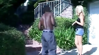 зрелая блондиночка заставляет большой черный член исчезнуть в ее пизде