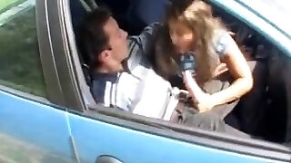 возбужденная подружка останавливает машину своего парня, чтобы хорошенько отсосать ему