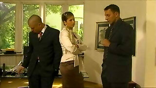высший и чувственный черноволосая красотка заманили и boinked двумя youthfull и звездных людей