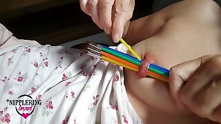 nippleringlover непослушная мамаша вставляет многочисленные палочки в экстраординарный пирсинг раздвинутых щипцов