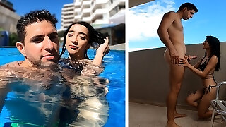 скрытная латиноамериканка с пузырчатыми ягодицами, скучающая по сексу, дрочит мне в бассейне. в конечном итоге у нас получается