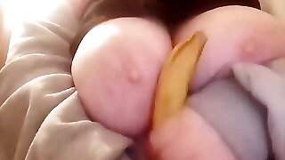 Banana inbetween the tits