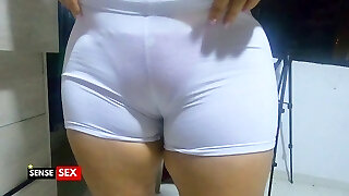 Super Hot GIRL IN TRANSPARENT WHITE SHORTS WITHOUT PANTIES