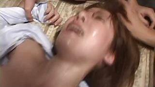 Japanese Mass Ejaculation, Cute Babe Gets Her Face Plastered With Loads Of Cum