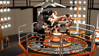 Boink machine & crazy sex. Male android plays with a crazy girl in restraints