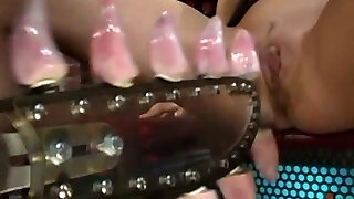 Crazy nubile pleases her cunt and anal hole with huge fuck machine