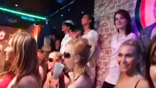 Inexperienced cfnm babes sucking at the bday party