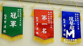 The Asian college girl suffered a 3P experience at the audition, and the sensitive pussy was banged and strewn with water