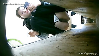 Bushy wet crevice recorded on a spy webcam juicing on a toilet