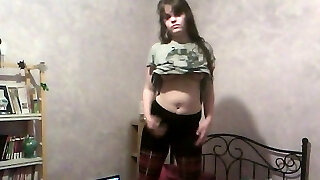 Stunning blonde teen takes off her pantyhose on webcam